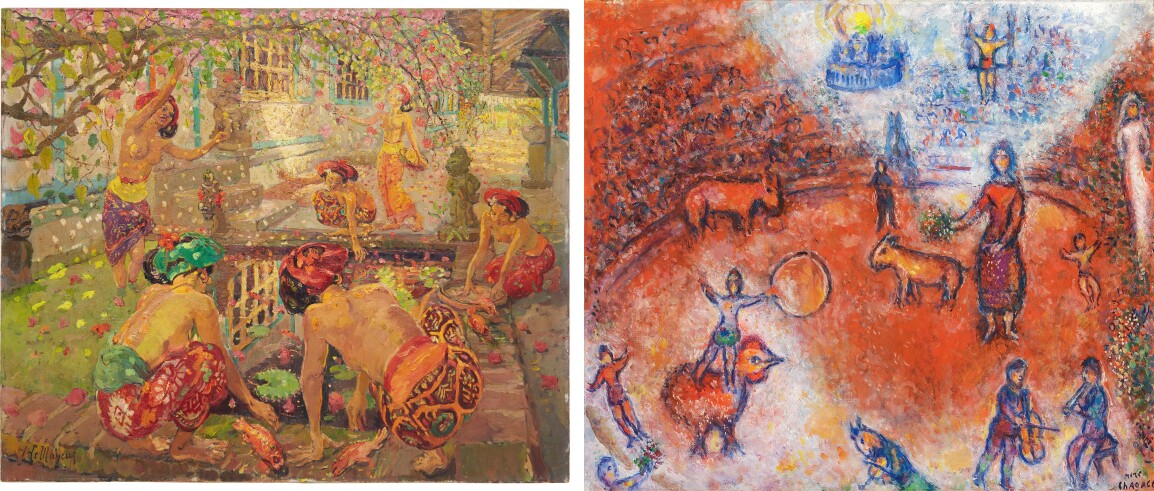 [由左至右] 勒迈耶, 池畔的巴厘女子 | 估价: 4,000,000 - 6,000,000 港元; 马克·夏加尔, 马戏团 | 估价: 12,000,000 - 18,000,000 港元