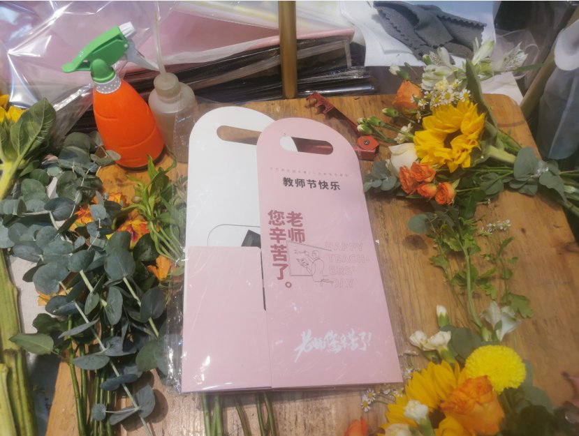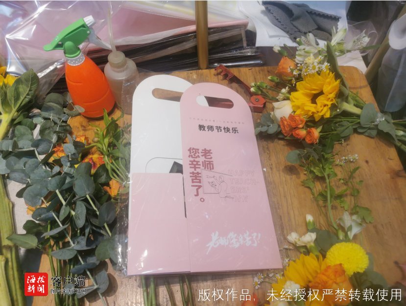记者在该店看到,店员专门为教师节打造的满天星手提花盒价格为50元一盒。“教师节这天,花店也十分热闹。半天时间满天星手提花盒卖掉不止50盒,预计到下午、傍晚还会适当降价清货。”该店员说。