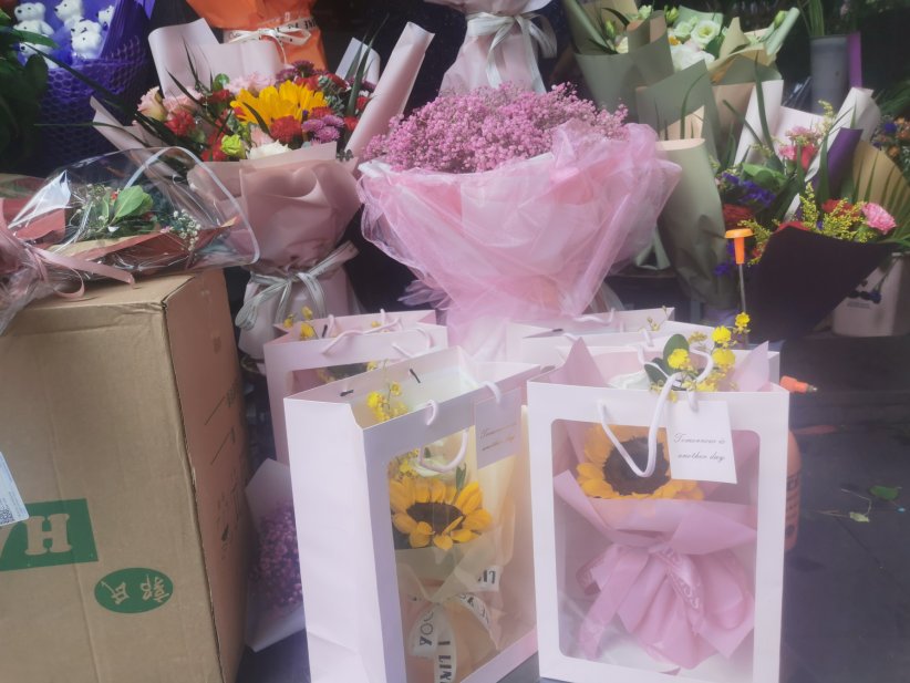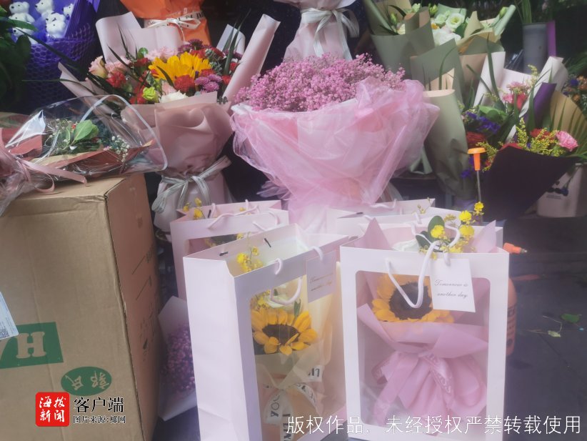 据了解,该店内,向日葵一束25元、康乃馨一束10元,而小型满天星花盒20元。学生喜好DIY手提花盒,也有家长提前预定了礼花送给孩子的老师。